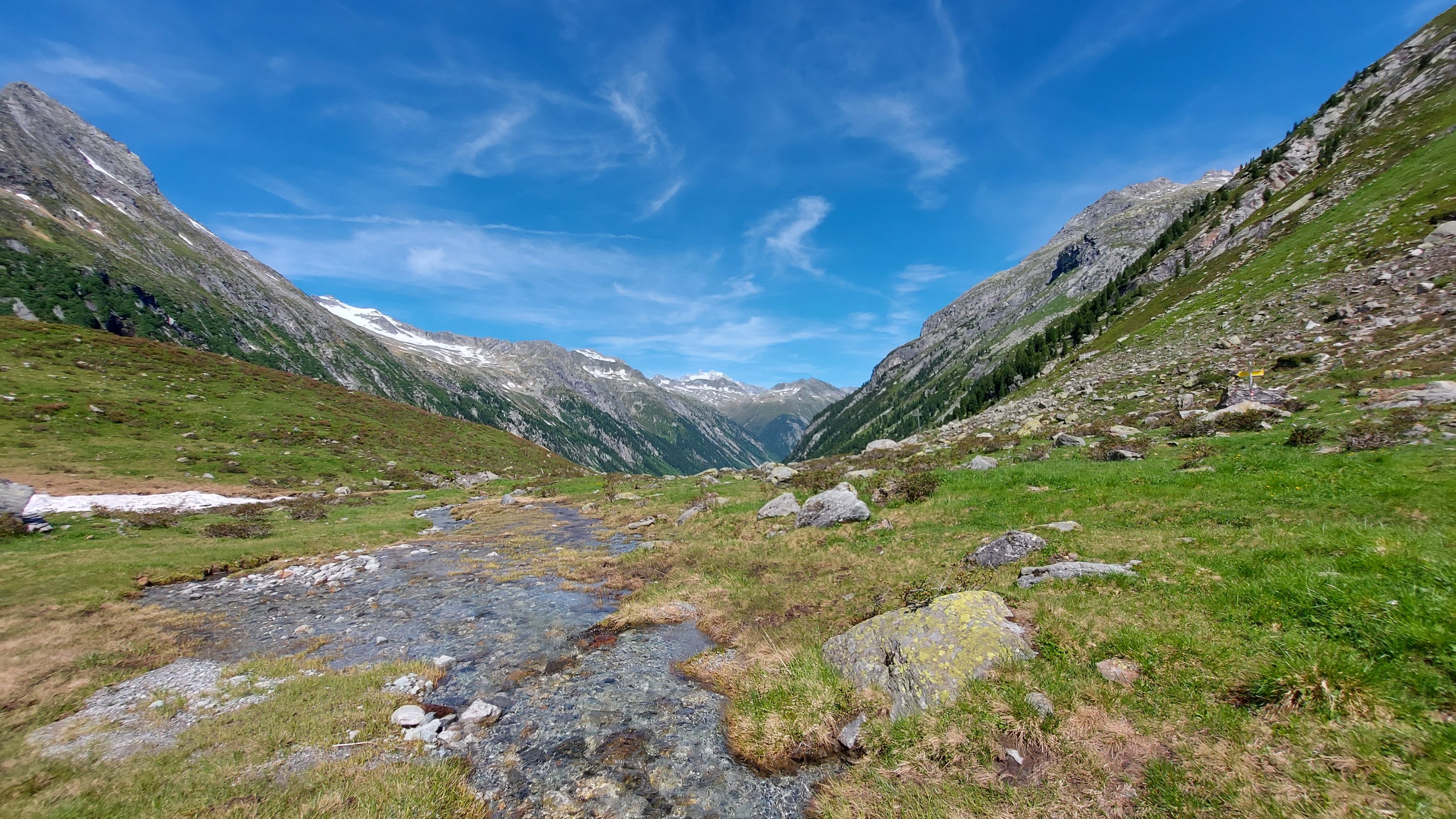 Vor dem Rückweg haben wir uns etwas gefürchtet da das Absteigen nicht weniger anstrengend ist und dann noch gute 7 Kilometer zurück zum Tauernhaus in der Sonne vor uns lagen. Aber von der Krimmler Ache, die sich neben uns durchs Tal mäandert wehte immer ein kühles Lüfterl und es gibt so vieles zu bestaunen, dass die Zeit wie im Flug verging und die Kilometer kaum auffielen.