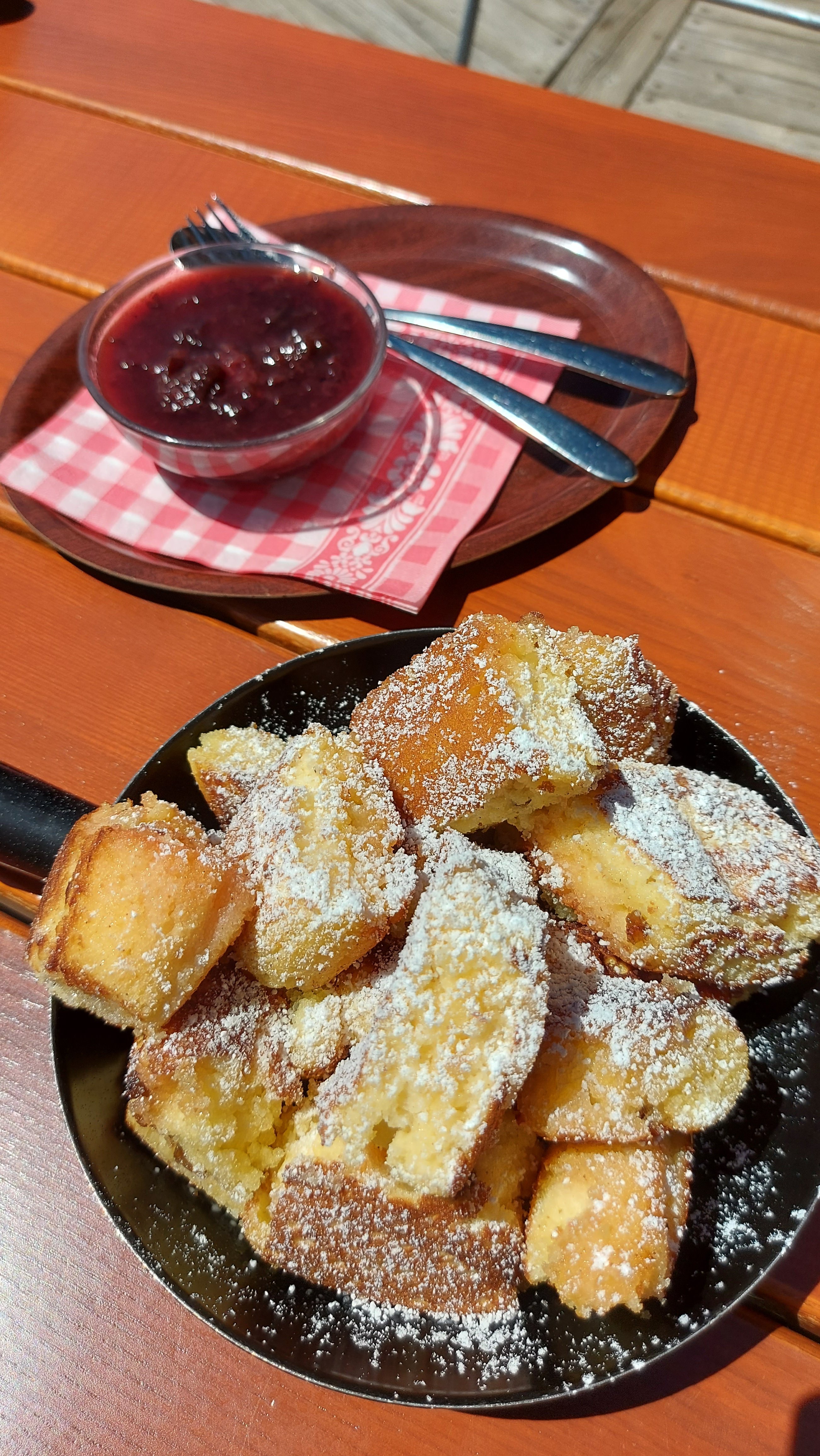 Auf der Hütte gibt es dann Kaiserschmarrn mit Zwetschkenröster. Die richtige Stärkung für den Abstieg und das Hinauswandern aus dem Tal.