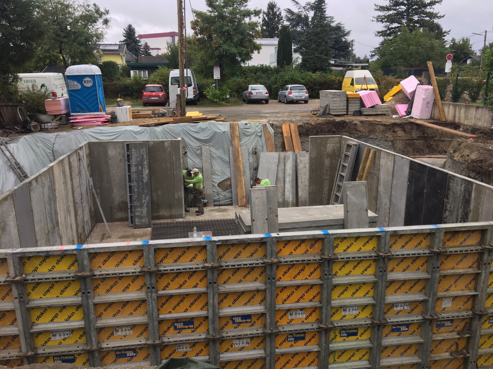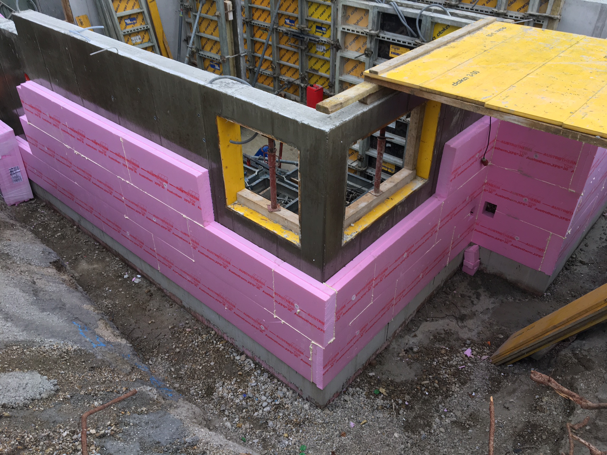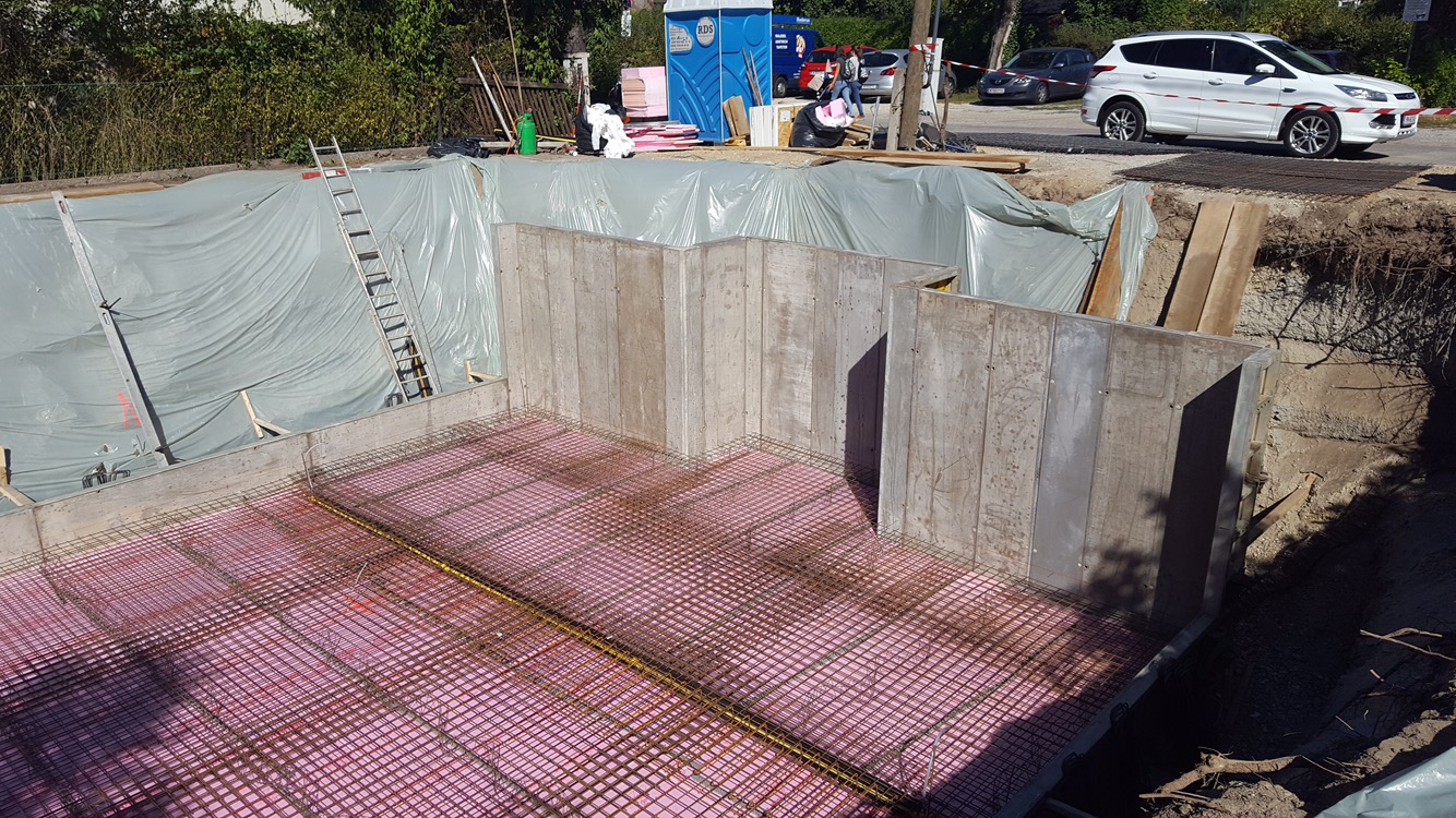 Jedenfalls schließen sich die Gräben um den Keller, es wird tonnenweise Material in Form von Schotter und Erde rangeschafft (ich fürchte mich schon vor den Kosten :-O) und die Dämmung ist bald fertig.