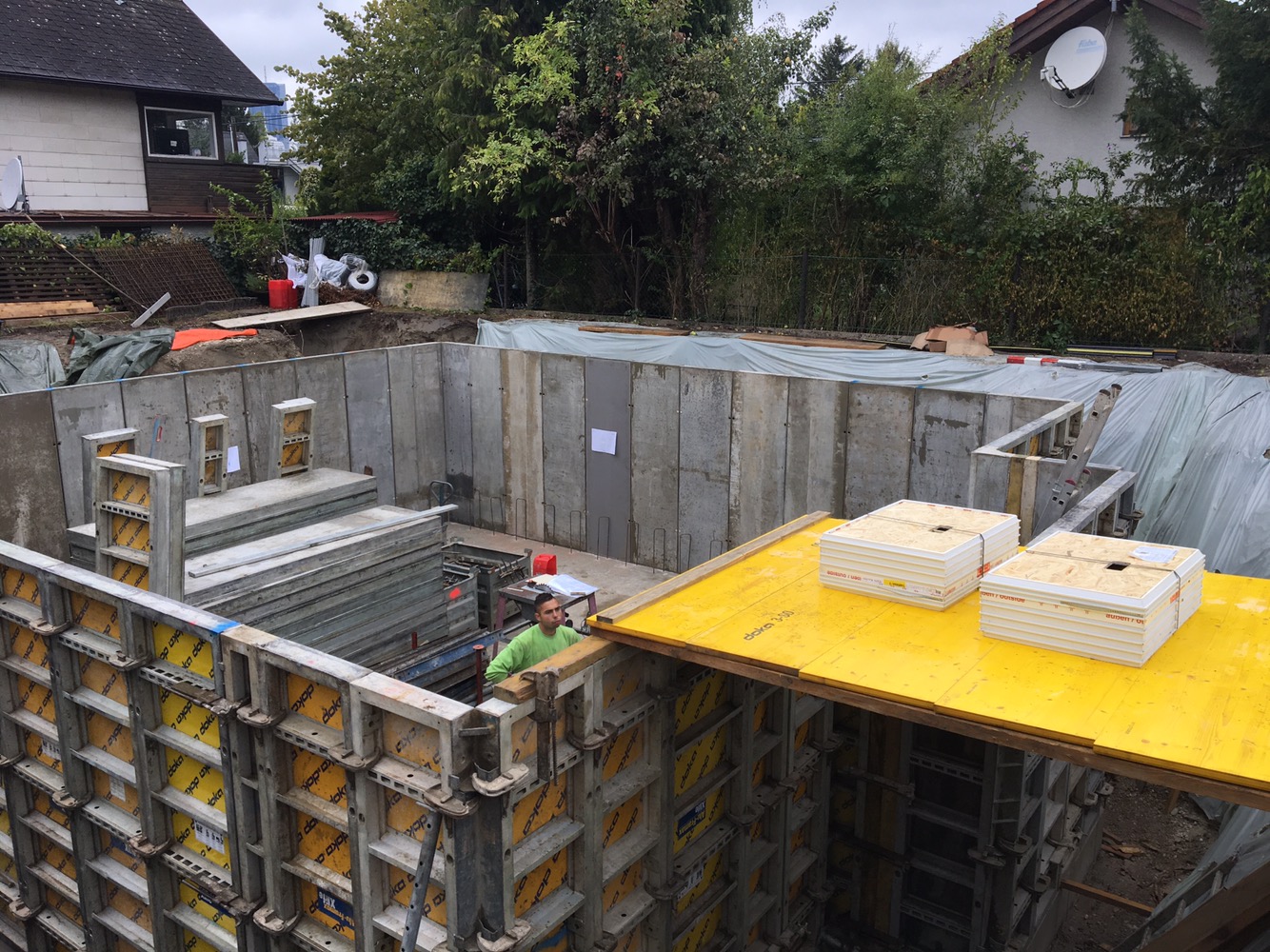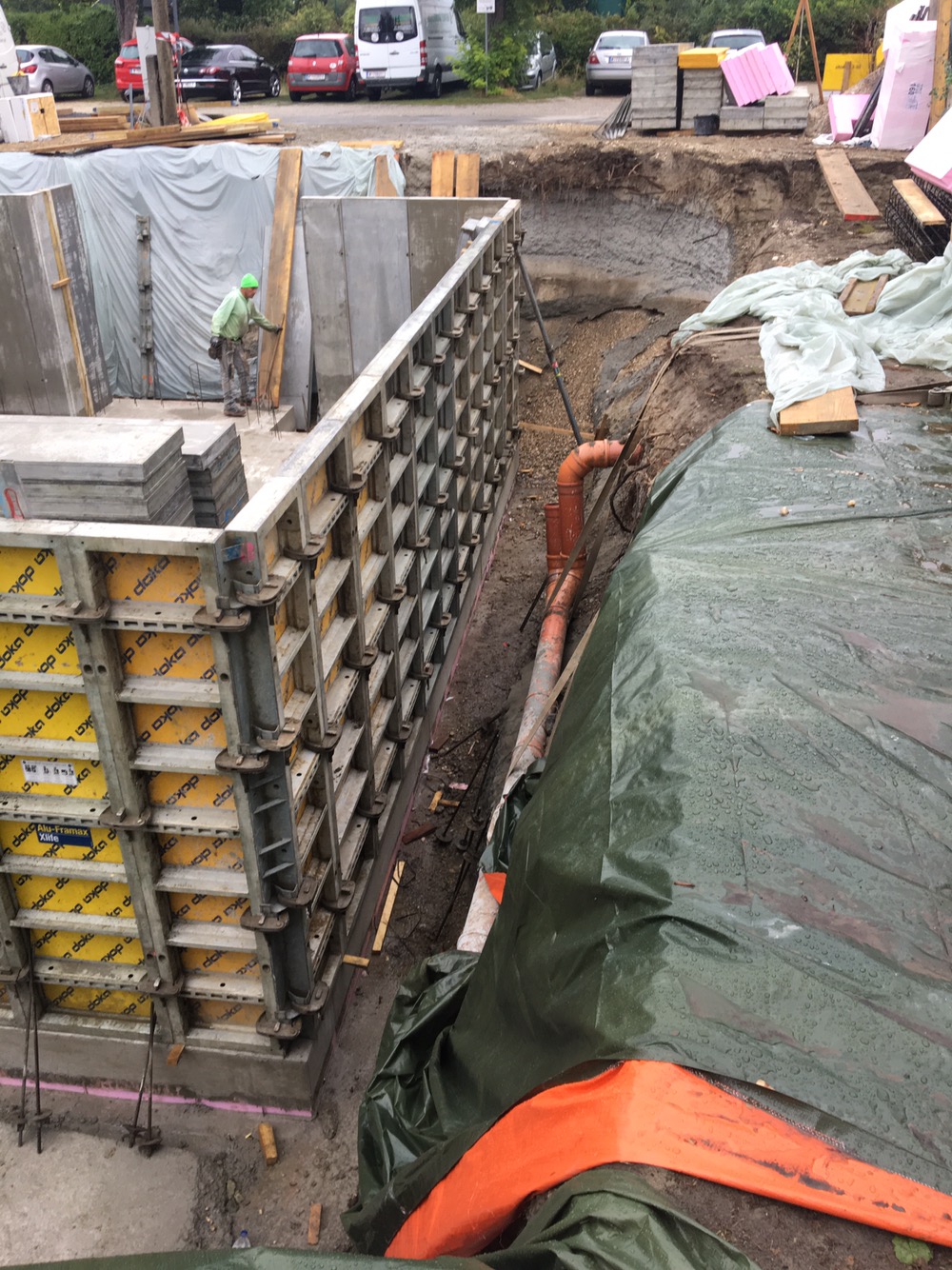 Morgen kommt am Nachmittag der Installateur und ich werde erst gegen Mittag meinen Lernplatz im Büro räumen. So gesehen gut, dass ich frei habe. Es stellt sich immer mehr heraus, dass es ganz wichtig ist, sich als Bauherr auf der Baustelle zu zeigen, obwohl man sprich ich ständig irgendwo im Weg herumsteht. Aber man ist als Ansprechpartner für Nachbarn und Arbeiter da und so soll es auch sein.