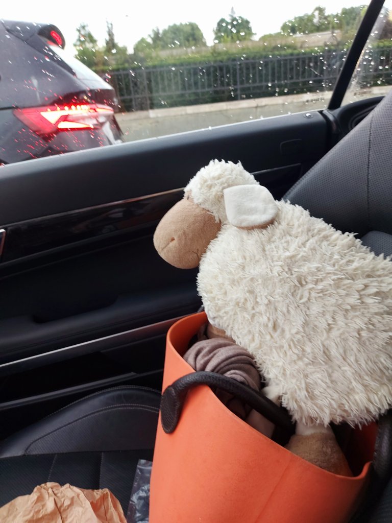 Kurz vor der Abfahrt hat es, wie vorhergesagt, zu regnen begonnen. Macht nichts, ich lasse mir den Urlaub nicht vermiesen.