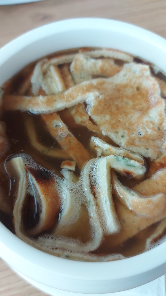 Ich komme um 9.45 in Wien weg, fahre durch wolkenbruchartigen Regen und zwischendurch Sonnenschein mal bis Mondsee, um mich dort mit Suppe und Kaffee zu stärken.