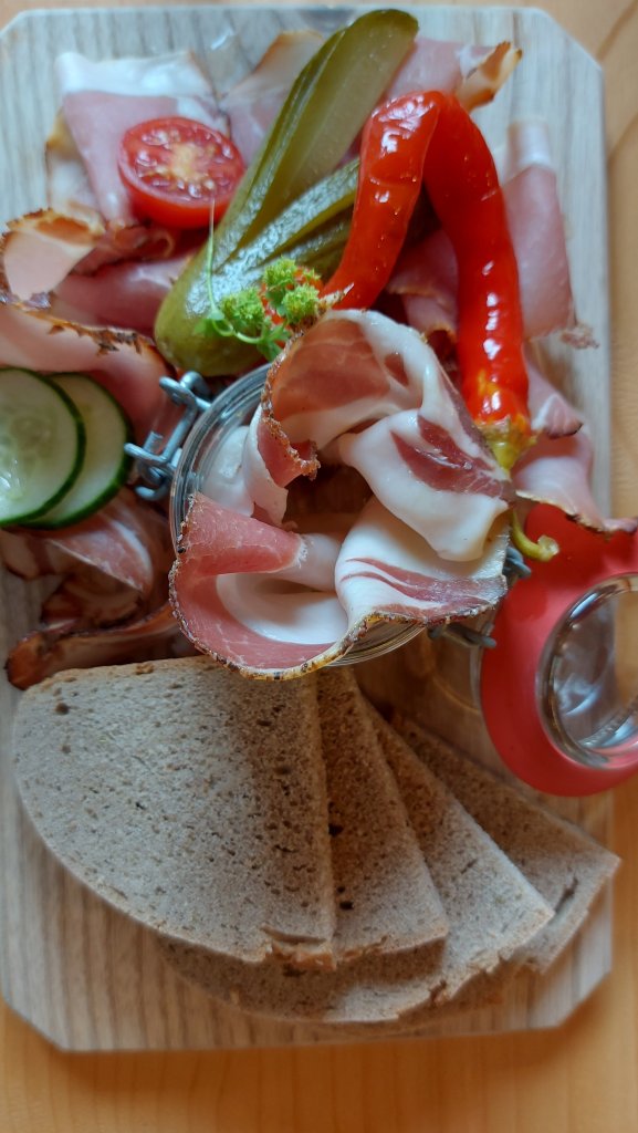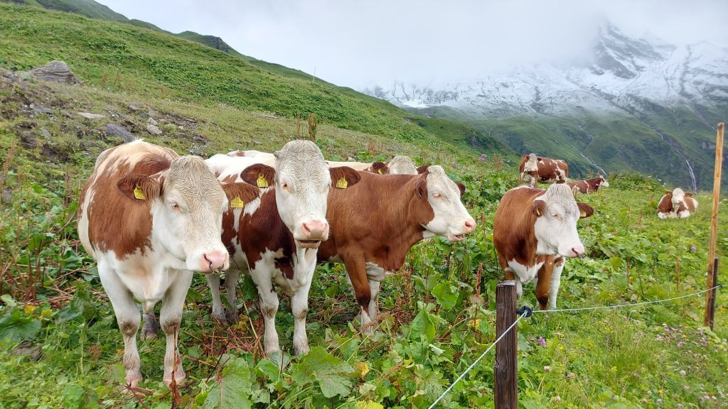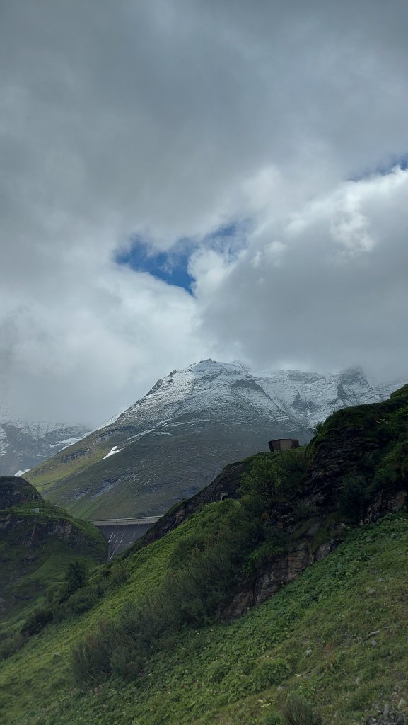 Regen bei 14 Grad konnten mich heute nicht davon abhalten um 9.00 Uhr beim Kesselboden gestellt zu sein, um an einer geführten Wanderung von Karl mitzumachen. Wir waren dann zu sechst, die sich zuerst mit dem Shuttlebus und dann mit dem Schrägaufzug und nochmals mit dem Bus zum oberen Stausee am Mooserboden aufmachten. Und das zuerst bei Regen und dann bei Schneefall. Aber die Stimmung war gut, ein Gipfelkreuz konnte gestürmt werden und später, nach einem wärmenden Kaffee, ließ der Regen nach und wir konnten doch noch zur Fürthermoar Alm absteigen. Die Jause dort war sensationell, egal ob Kaiserschmarrn oder Speckjause.