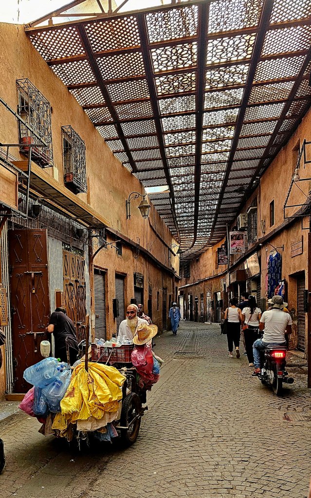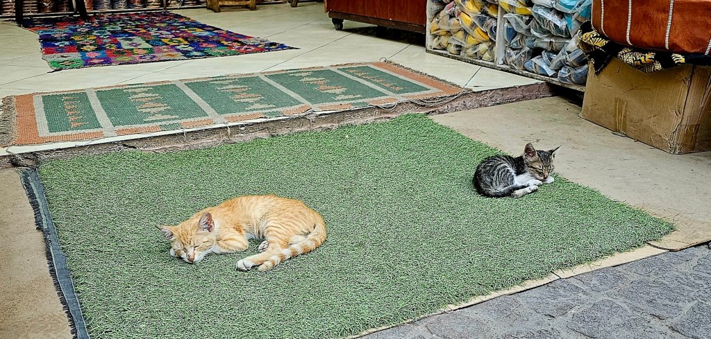 Wir haben den letzten Tag hier einerseits im Hotel andererseits hautschonend in den Souks verbracht. Die marokkanische Sonnencreme, die wir verwendet haben, hat leider nicht gehalten was sie versprochen hat. Macht auch nichts, wir fanden genug Schattenplätze und Geschäfte zum Einkaufen 🤣🙈.