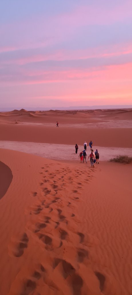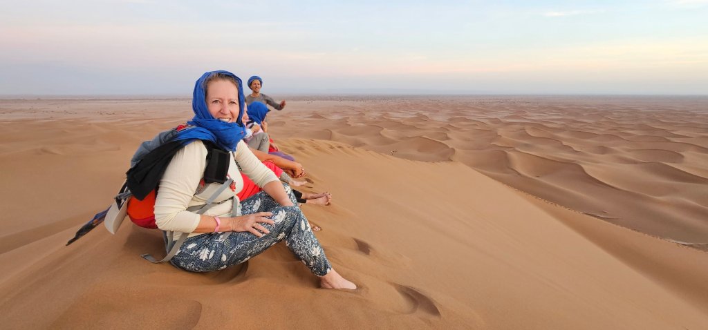 Den Nachmittag nutzten wir für einen Besuch im Hammam. Geschrubbt und gesalbt lässt es sich gut ruhen. Zum Abendessen trafen wir dann eine unserer Mitwanderinnen. Den Abend lassen wir auf der Terrasse ausklingen. Vor 23.00 Uhr brauchen wir nicht ins Bett gehen, denn solange dröhnt die Musi von allen Seiten. Fast so schlimm wie der Weckruf des Muezzins um 06.00 Uhr 😉