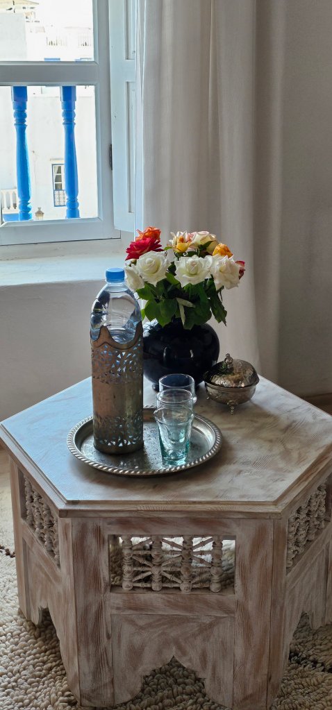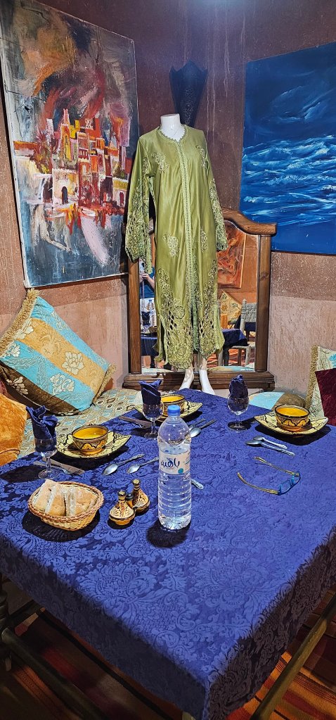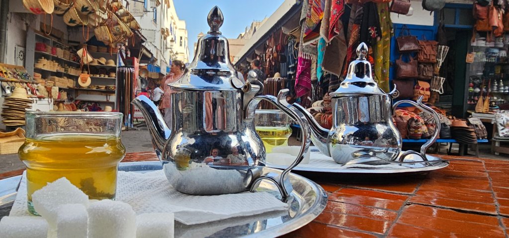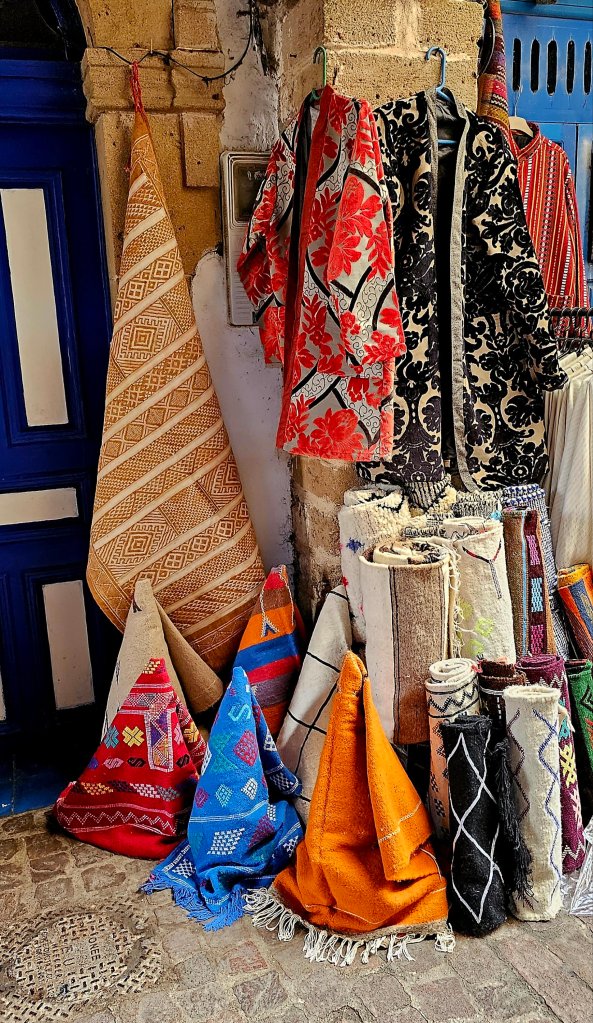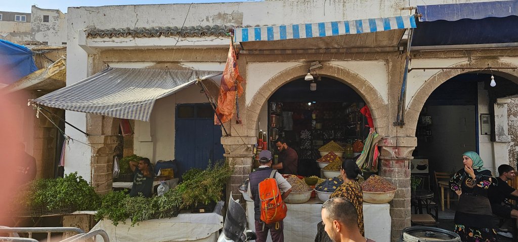 Essaouira liegt wirklich sehr hübsch am Meer, die Altdtadt wird von einer Befestigungsmauer umgeben und innerhalb befinden sich enge verwinkelte Gassen, in denen sich dicht an dicht die Geschäfte reihen. Wir haben uns mit Arganöl eingedeckt und für mich eine Jacke gekauft, weil es der besagte Nebel sehr kühl gemacht hat. Zum Abendessen waren wir in einem kleinen Lokal mit 2 unserer Mitwanderinnen. Die Tajine war großartig und endlich gab es auch wieder Eisenkrauttee (Verbene). Ich weiß jetzt, welche neue Pflanze nächstes Jahr in meinen Garten einziehen wird.